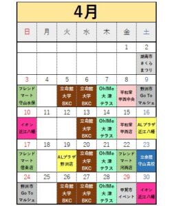 4月のキッチンカー出店予定